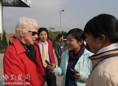 記者現(xiàn)場(chǎng)采訪外國(guó)來(lái)賓