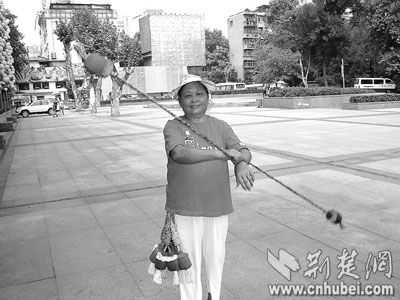 荊楚網(wǎng)消息(楚天都市報)(記者雷艷 實(shí)習(xí)生丁莉娟)繩子兩端各系一個彩色布球,在空中轉(zhuǎn)起來,彩球像流星飛舞(如圖)。昨日一大早,71歲的魏玉枝來到漢口中山公園,玩起流星球。