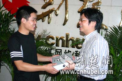 荊楚網副總編輯黃斌給武漢的陳先生頒發(fā)獎品