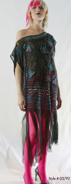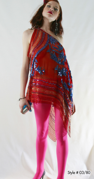 現(xiàn)年63歲的Zandra Rhodes,是英國(guó)乃至世界時(shí)裝界舉足輕重的人物,她所設(shè)計(jì)的朋克時(shí)裝在上個(gè)世紀(jì)70年代曾經(jīng)風(fēng)靡一時(shí),并曾為Jackie Onassis, Diana Ross, Diana王妃設(shè)計(jì)造型。后來(lái),隨著中性色調(diào)的流行,她用色鮮明、圖案大膽的設(shè)計(jì)風(fēng)格逐漸淡出時(shí)裝舞臺(tái);但是,在進(jìn)入本世紀(jì)之后,新一代的年輕人又開(kāi)始欣賞起她獨(dú)特的品位。
