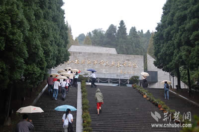 當(dāng)日下午,采訪團(tuán)一行來到了井岡山革命烈士陵園。園區(qū)位于茨坪北面的北巖峰上。抵達(dá)目的地后,首先映入眼簾的是“井岡山革命烈士陵園”九個(gè)燙金大字,據(jù)介紹,這幾個(gè)字是參加過井岡山斗爭的老紅軍宋任窮同志題寫的。