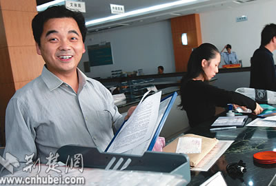 7日,武漢雷泰電力材料有限公司的張紅軍(上圖),僅用20分鐘就在武漢市洪山區(qū)政務(wù)服務(wù)中心辦理完公司的稅務(wù)登記證。他滿臉笑容地說:“現(xiàn)在辦事方便了,態(tài)度也好了!倍荒昵,辦理同樣一份登記證至少要跑4個(gè)部門,有時(shí)花一星期時(shí)間也不一定能辦妥。