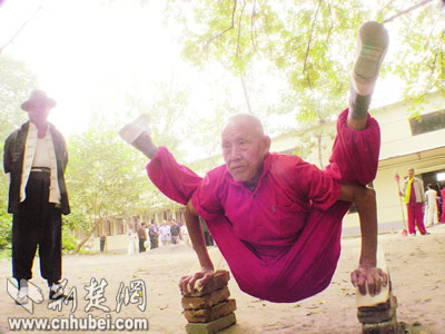 昨日,由武漢市體育局主辦的首屆體育廟會(huì)在武漢市青少年宮開幕。各種中國傳統(tǒng)體育項(xiàng)目紛紛登場(chǎng)初賽、表演。尤其是一些絕技絕活,如心房頂戟、后腦斷磚、朝天蹬、九節(jié)神鞭等,驚險(xiǎn)刺激,令觀者嘖嘖稱奇。記者劉大家、胡彩麗攝影報(bào)道