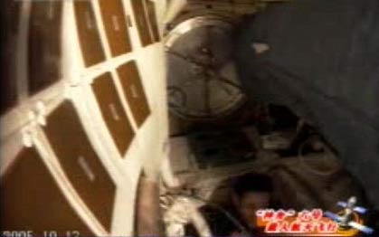 人民網(wǎng) 北京航天飛行控制中心10月13日訊 前方報道組報道:今天下午,神六首次傳回軌道艙畫面。