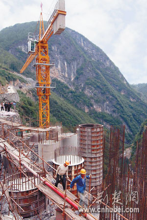 在宜萬鐵路五爪觀隧道,在滬蓉西高速支井河大橋,在沿線不少工地,建設者們不得不在懸崖上鑿出一小塊平地,小心翼翼擺放設備。他們的心始終懸著,怕山體滑坡、怕下雨塌方,怕設備損毀。