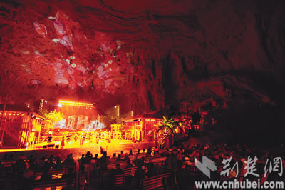 利川騰龍洞成為天然的文藝表演劇場(chǎng)。本報(bào)記者楊平攝