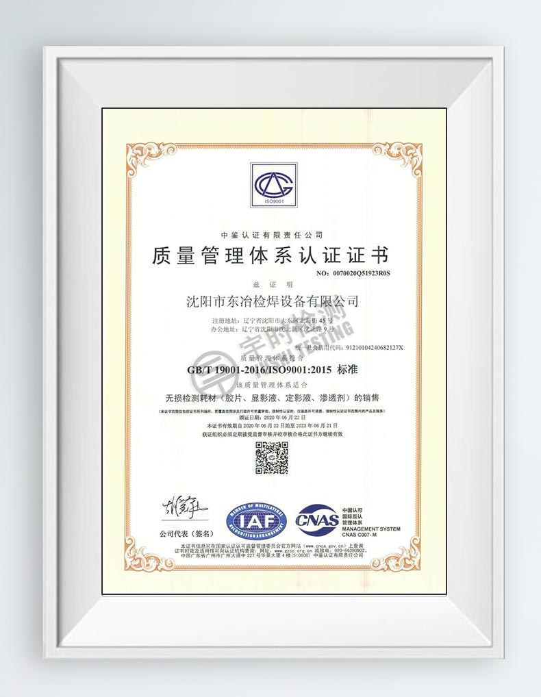 質(zhì)量管理體系認(rèn)證證書(shū)