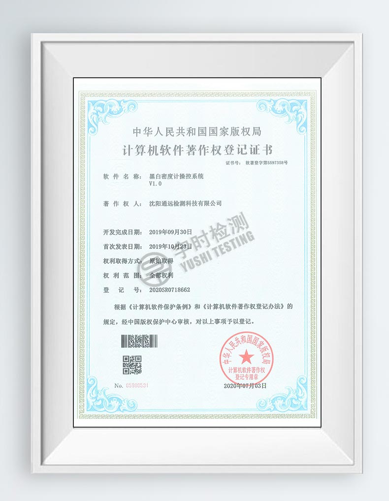 黑白密度計(jì)操作系統(tǒng)著作權(quán)證書(shū)
