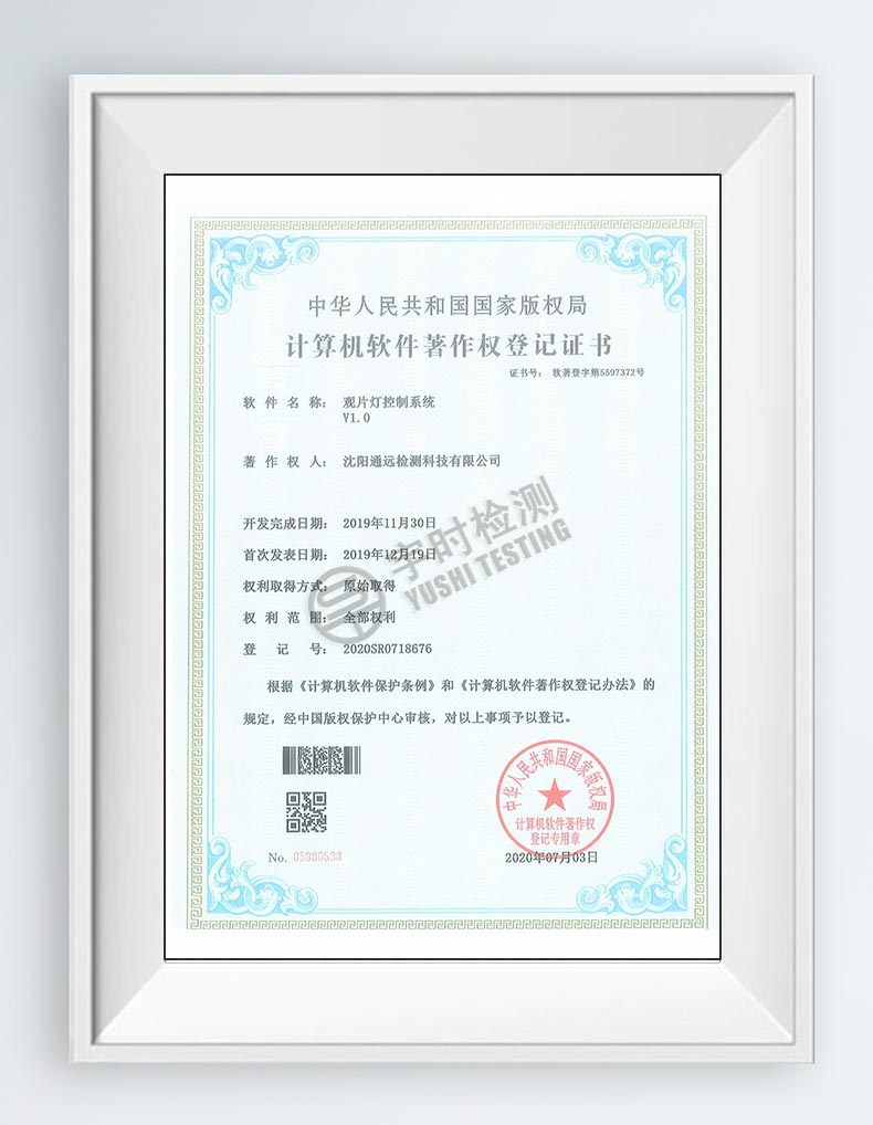 觀片燈控制系統(tǒng)軟件著作權(quán)證書(shū)