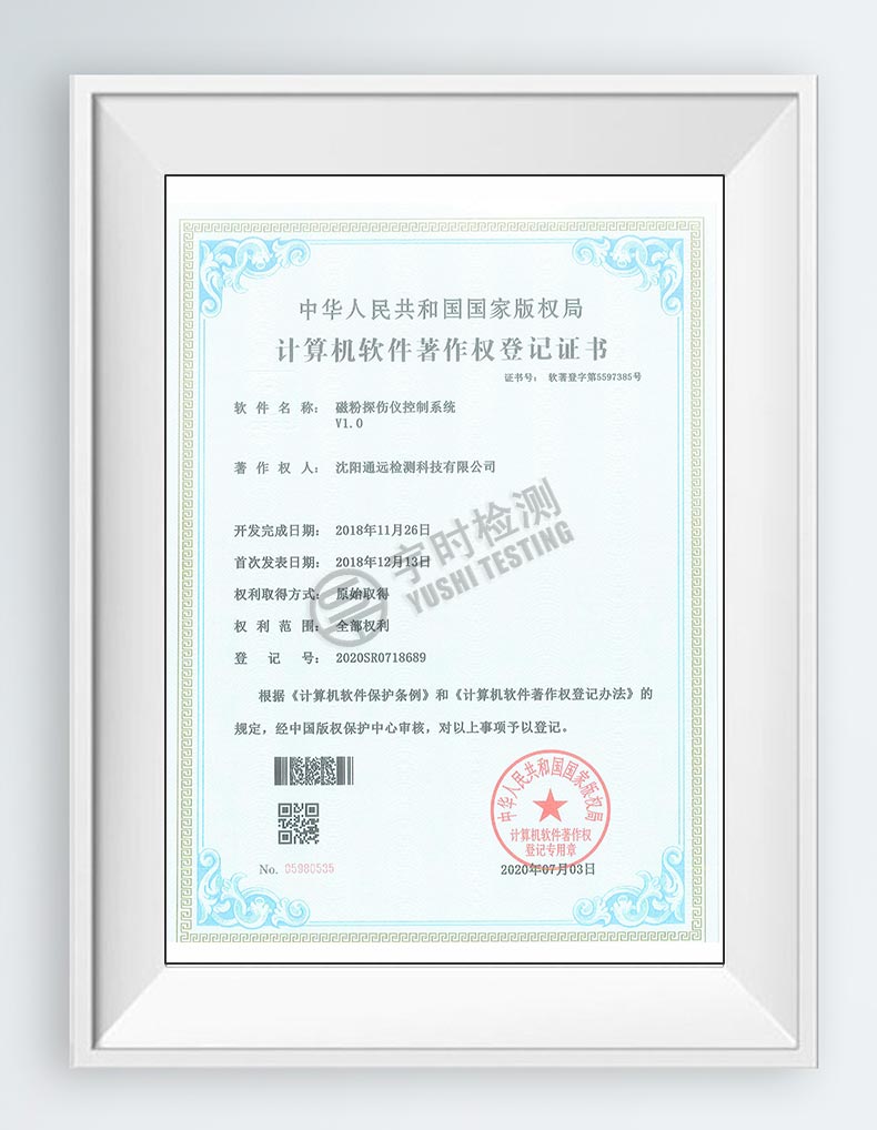 磁粉探傷儀控制系統(tǒng)軟件著作權(quán)證書(shū)