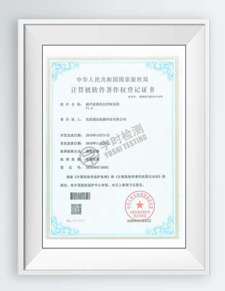 超聲波探傷儀控制系統(tǒng)軟件著作權(quán)證書(shū)