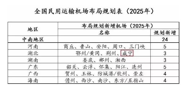 此前發(fā)布的《中國民用航空發(fā)展第十三個五年規(guī)劃》中,湖北省有兩個新建機場項目,分別是荊州、鄂州/黃岡機場,此次,咸寧機場成功擠入支線機場建設規(guī)劃。