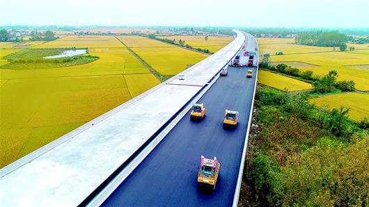 10月19日,施工單位在武深高速公路嘉魚北段進行路面瀝青攤鋪,該項目預(yù)計年底全部完工,通車后將緩解京港澳高速的交通壓力,嘉魚也將真正進入武漢1小時交通圈。