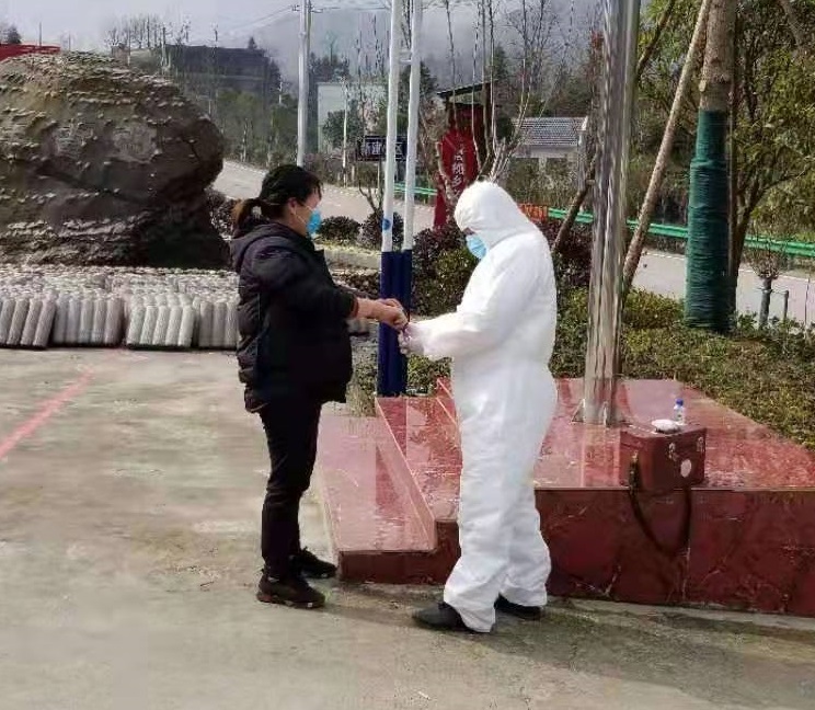 面對日益嚴峻的防控形勢,以黃其軍、黃學初等為代表的老黨員主動加入到這場戰(zhàn)“疫”中 來,從1月25日起就在村北端出村口卡點值守至今;城市管理執(zhí)法局駐 村干部沈杰、縣農(nóng)業(yè)銀行駐村干部汪志超從1月26日加入義源村村委班子,為78個武漢回鄉(xiāng)人員逐一發(fā)放溫度計 測量體溫,并加入24小時的守卡隊伍中,20 多天以來不曾回過一次家。
