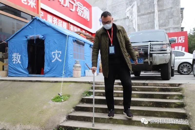 早在2016年,因?yàn)橐粓鲆馔?,造成劉衷輝雙膝半月板壞死,前后進(jìn)行兩次手術(shù)均失敗,被定為二級傷殘,到現(xiàn)在走路都需要拄著拐杖慢慢挪動,行動十分不便。即便是在這樣的情況下,劉衷輝沒有退縮,柱起拐杖就來到了天城鎮(zhèn)和平社區(qū)政協(xié)網(wǎng)格點(diǎn)參與卡點(diǎn)值守工作。