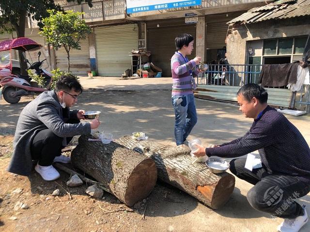 或站著或蹲著吃飯的戰(zhàn)“役”者隨處可見