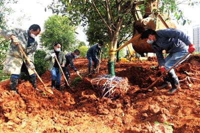 3月11日,記者在城區(qū)泉都大道拍攝的綠化造林現(xiàn)場。