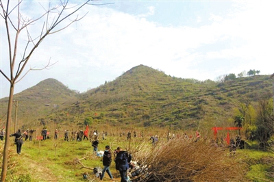 3月11日,通城縣直機(jī)關(guān)單位部分干部,戴著口罩開(kāi)展義務(wù)植樹(shù)活動(dòng)。