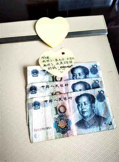來自曲靖市中醫(yī)醫(yī)院的一位隊(duì)員用了一條毛巾,留下30元錢,并用便利貼寫著:“阿姨,我用了一條毛巾,不可以再用了,這是賠償?shù)腻X!”