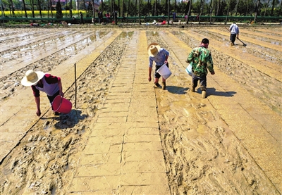 3月18日,咸安區(qū)俊敏種植專(zhuān)業(yè)合作社的社員們正忙著鋪秧盤(pán)、撒谷種。日前隨著氣溫回升,在做好新冠肺炎疫情防控的基礎(chǔ)上,咸安區(qū)搶抓農(nóng)時(shí)開(kāi)展早稻春播生產(chǎn),組織當(dāng)?shù)厮膫€(gè)專(zhuān)業(yè)合作社搭建中型水稻集中育秧基地2個(gè)、小型水稻集中育秧基地2個(gè),通過(guò)規(guī)?;?biāo)準(zhǔn)化集中育秧提高種植效率,為村民提供水稻集中育秧和機(jī)械化插秧一條龍托管服務(wù),助力當(dāng)?shù)剞r(nóng)民早稻春播。