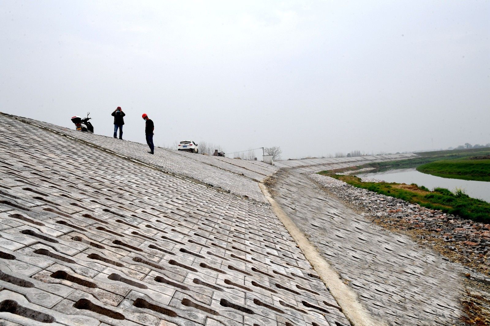 黃蓋湖流域面積1538平方公里,其中赤壁市內(nèi)432平方公里,涉及黃蓋湖鎮(zhèn)、滄湖開發(fā)區(qū)、余家橋鄉(xiāng)、新店鎮(zhèn)、趙李橋鎮(zhèn)5個(gè)鄉(xiāng)鎮(zhèn)。流域內(nèi)保護(hù)耕地面積8.92萬畝,保護(hù)人口4.22萬。2018年9月,赤壁市啟動(dòng)對該流域防洪治理工程施工,對防洪堤土方加高加培、新建護(hù)岸工程和防汛公路、堤基防滲錐探灌漿處理、填塘固基、新建沉螺池、泵站加固工程、穿堤涵閘工程及金屬結(jié)構(gòu)設(shè)備安裝等。截止目前,該工程土方、泵站等所有主體工程均已完工,全面進(jìn)入草皮護(hù)坡、防汛路面施工中。