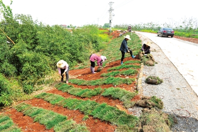 4月1日,渡普鎮(zhèn)斧頭湖加固工程現(xiàn)場,工人們正在為加固的斧頭湖大堤植草皮。項目負(fù)責(zé)人張慶介紹,斧頭湖大堤植草皮標(biāo)志著歷經(jīng)2年的斧頭湖加固工程已進(jìn)入尾聲。