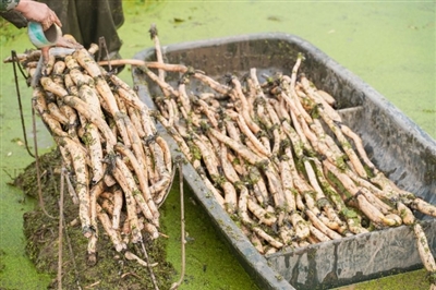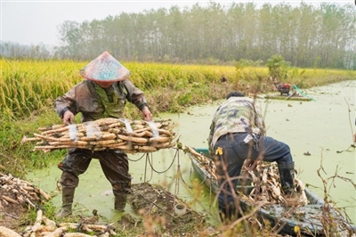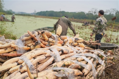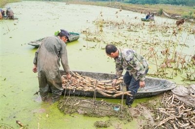 10月26日,嘉魚縣陸溪鎮(zhèn)界石村鴨兒湖養(yǎng)殖專業(yè)合作社里,負(fù)責(zé)人龔木前正和工人們一起忙著挖藕、稱重、清洗、包裝。龔木前是一名退役軍人,2009年,龔木前從部隊轉(zhuǎn)業(yè)后回鄉(xiāng)創(chuàng)業(yè),承包了村里50畝荒湖種野藕。經(jīng)過幾年時間的發(fā)展,他成立了農(nóng)業(yè)合作社,把藕塘面積擴大到300多畝。近些年,通過他的努力,他家的野藕通過電商遠(yuǎn)銷全國各地,高峰期時,每天可以接到200余張訂單。 通訊員 耿海軍 杜瑞 攝