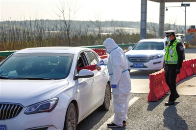 1月28日,2021年春運開啟。29日上午,在咸安區(qū)張公高速收費站路口,紅色水碼擺放成指引車道,幾個全副武裝的工作人員正對過往車輛逐一進(jìn)行排查。遇到外地或中高風(fēng)險地區(qū)來車就指引其到帳篷內(nèi)測體溫、查健康碼等,并詳細(xì)登記對方信息。