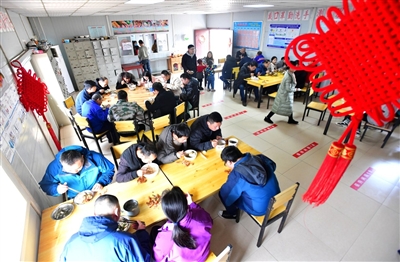 “項目部很貼心,給外地來的家屬準(zhǔn)備了很多過年物資,還給孩子們準(zhǔn)備了玩具。”在職工宿舍樓下,龔飛正帶著孩子們玩耍,她說,這里掛燈籠、貼春聯(lián)、糊窗花,在這里過年感受到了家一般的溫暖,年味濃濃。