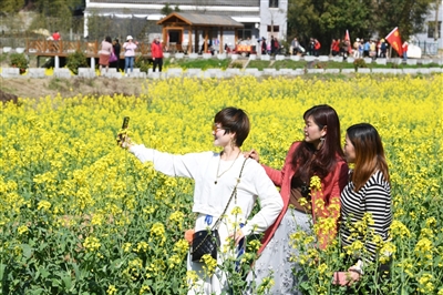 吳秀琴是曾鋪村十組村民,一家人正商量如何接待游玩的游客,而她家正好在花海景點(diǎn)的入口處。“去年我家的4畝油菜產(chǎn)了1200斤左右的菜籽,賺了一萬(wàn)多元?!眳切闱俑吲d地說(shuō):“今年準(zhǔn)備開(kāi)農(nóng)家樂(lè),再賣(mài)點(diǎn)臘魚(yú)臘肉,多掙點(diǎn)錢(qián)!”在賞花的過(guò)程中,附近的農(nóng)家樂(lè)生意也非常火爆,很多村民在景點(diǎn)處擺攤賣(mài)起了自家的農(nóng)產(chǎn)品,使游客盡興而來(lái),滿(mǎn)載而歸。