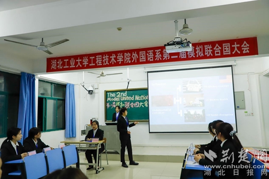 湖北工業(yè)大學(xué)工程技術(shù)學(xué)院外國語系第二屆模擬聯(lián)合國大會。通訊員 供圖