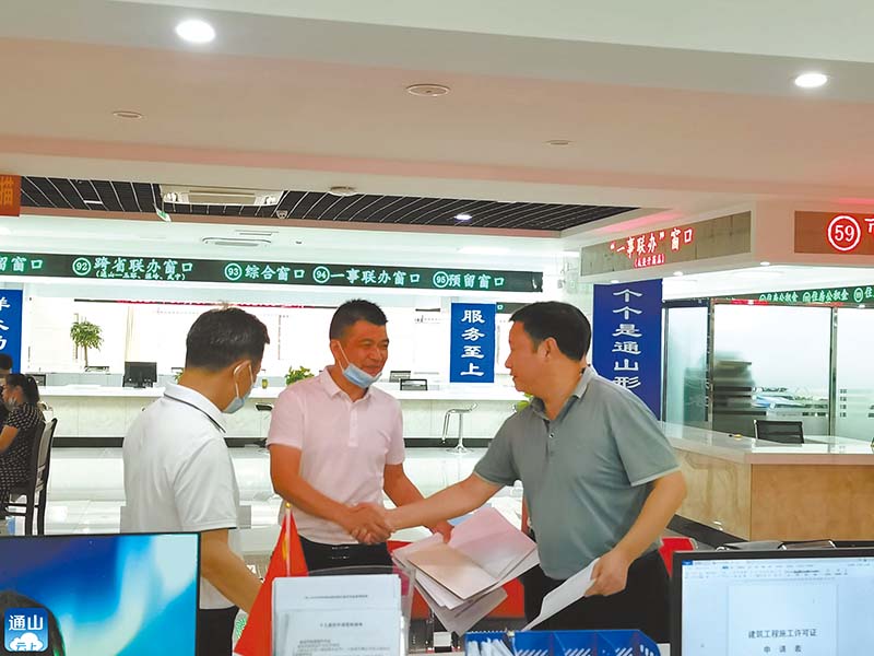 “1個地塊5個證,一共25個證,沒想到一天就能拿到手!”9月30日下午,在通山縣政務(wù)服務(wù)中心工程建設(shè)項(xiàng)目綜合審批窗口,通山縣興達(dá)鞋業(yè)有限公司經(jīng)理程宏兵從縣住建局局長手中接過厚厚的一摞證,意味著通山縣興達(dá)鞋業(yè)有限公司在通山的地塊達(dá)到開工條件。