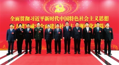 12月7日下午,新當選的中共咸寧市第六屆委員會常務委員會委員集體合影?!∠虒幦請笕襟w記者 袁燦 攝