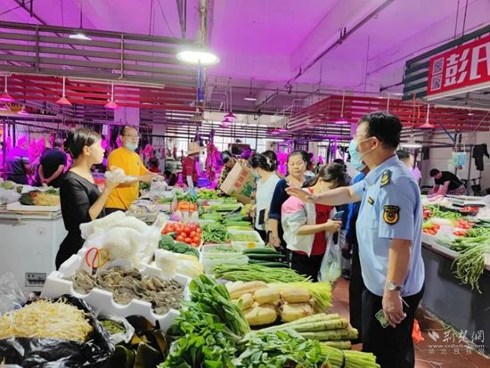 在各農(nóng)貿(mào)市場,執(zhí)法人員對蔬菜、肉類、糧油價(jià)格進(jìn)行檢查。通訊員 供圖