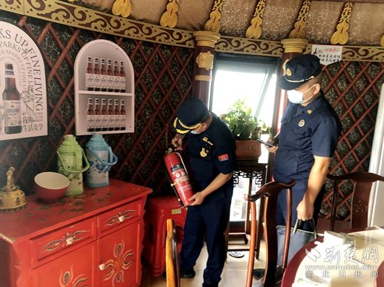 期間,檢查組一行詳細(xì)對(duì)使用燃?xì)獾母黝?lèi)餐飲場(chǎng)所是否取得燃?xì)饨?jīng)營(yíng)許可證,廚房與其他部位防火分隔,是否使用燃?xì)鈭?bào)警器,燃?xì)庠O(shè)備、管線(xiàn)設(shè)置和維護(hù)等情況進(jìn)行檢查,并重點(diǎn)就燃?xì)廛浌苁欠翊嬖诟g、老化現(xiàn)象、廚房電氣線(xiàn)路敷設(shè)、油煙管道是否定期清理等情況進(jìn)行查看。同時(shí),還向餐飲工作人員講解燃?xì)獾氖褂靡?guī)范、檢漏方法、泄漏的應(yīng)急措施及逃生與自救。