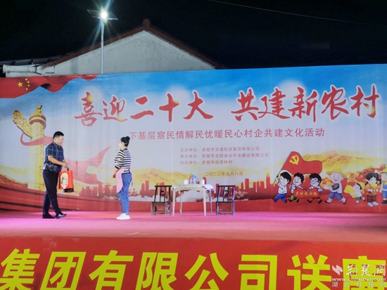 荊楚網(wǎng)(湖北日報網(wǎng))訊(通訊員李傳麗 楊婷 楊芳)中秋節(jié)即將來臨,為豐富廣大黨員干部群眾的精神文化生活,營造節(jié)日喜慶氛圍。9月8日晚,赤壁交投集團在該市趙李橋鎮(zhèn)趙李橋村舉辦“喜迎二十大 共建新農(nóng)村”送廉文化下鄉(xiāng)主題晚會,以文化浸潤凝聚黨心民心,用文化展現(xiàn)從嚴(yán)治黨,弘揚清風(fēng)正氣。