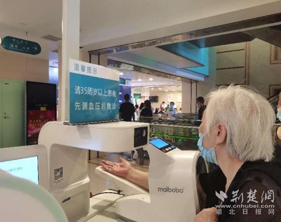 在內(nèi)科普通門診及專家門診候診區(qū),門診部給予溫馨提示:提醒35歲以上患者及時(shí)監(jiān)測(cè)血壓,可利用該設(shè)備憑掛號(hào)單或身份證進(jìn)行體溫、血壓、脈搏監(jiān)測(cè),必要時(shí)還可以進(jìn)行身高、體重、身體質(zhì)量指數(shù)、血氧飽和度監(jiān)測(cè)。