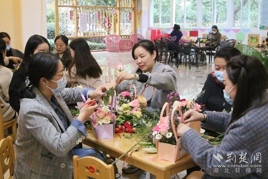 職工DIY插花。通訊員 供圖