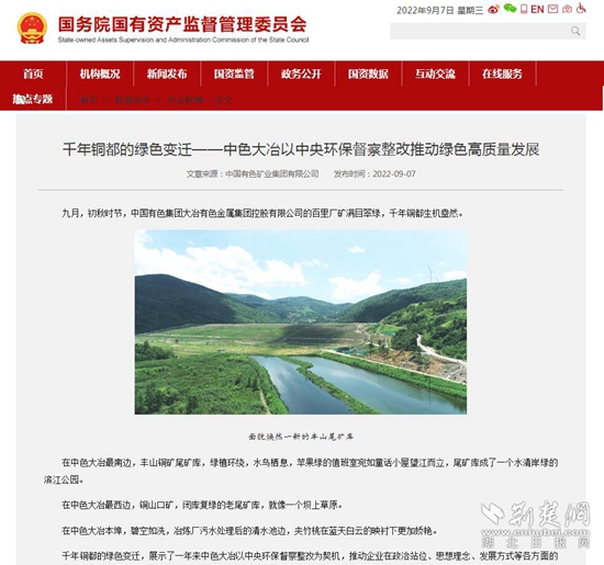 荊楚網(wǎng)(湖北日報網(wǎng))訊(通訊員 王剛 陶三保)12月1日,從中色大冶獲悉,在中央環(huán)保督察通報公司典型案例一周年之際,反映中色大冶環(huán)保督察整改、綠色發(fā)展成效的通訊《千年銅都的綠色變遷》在國資委網(wǎng)站、中國有色金屬報等多家主流媒體和行業(yè)媒體上刊發(fā)。