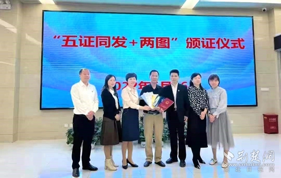 羅田縣政務服務和大數(shù)據(jù)管理局為企業(yè)頒發(fā)“五證”。通訊員 供圖