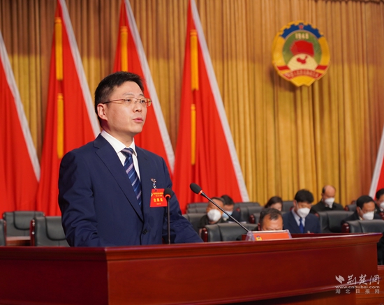 華容區(qū)政協(xié)副主席萬向東作《中國人民政治協(xié)商會(huì)議華容區(qū)第九屆委員會(huì)常務(wù)委員會(huì)