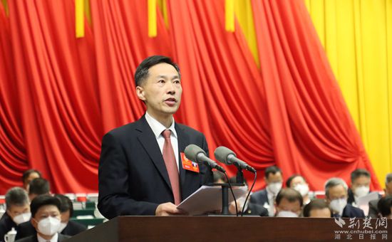 洪再林作《中國人民政治協(xié)商會議黃岡市第六屆委員會常務(wù)委員會工作報告》。記者胡小軍 攝
