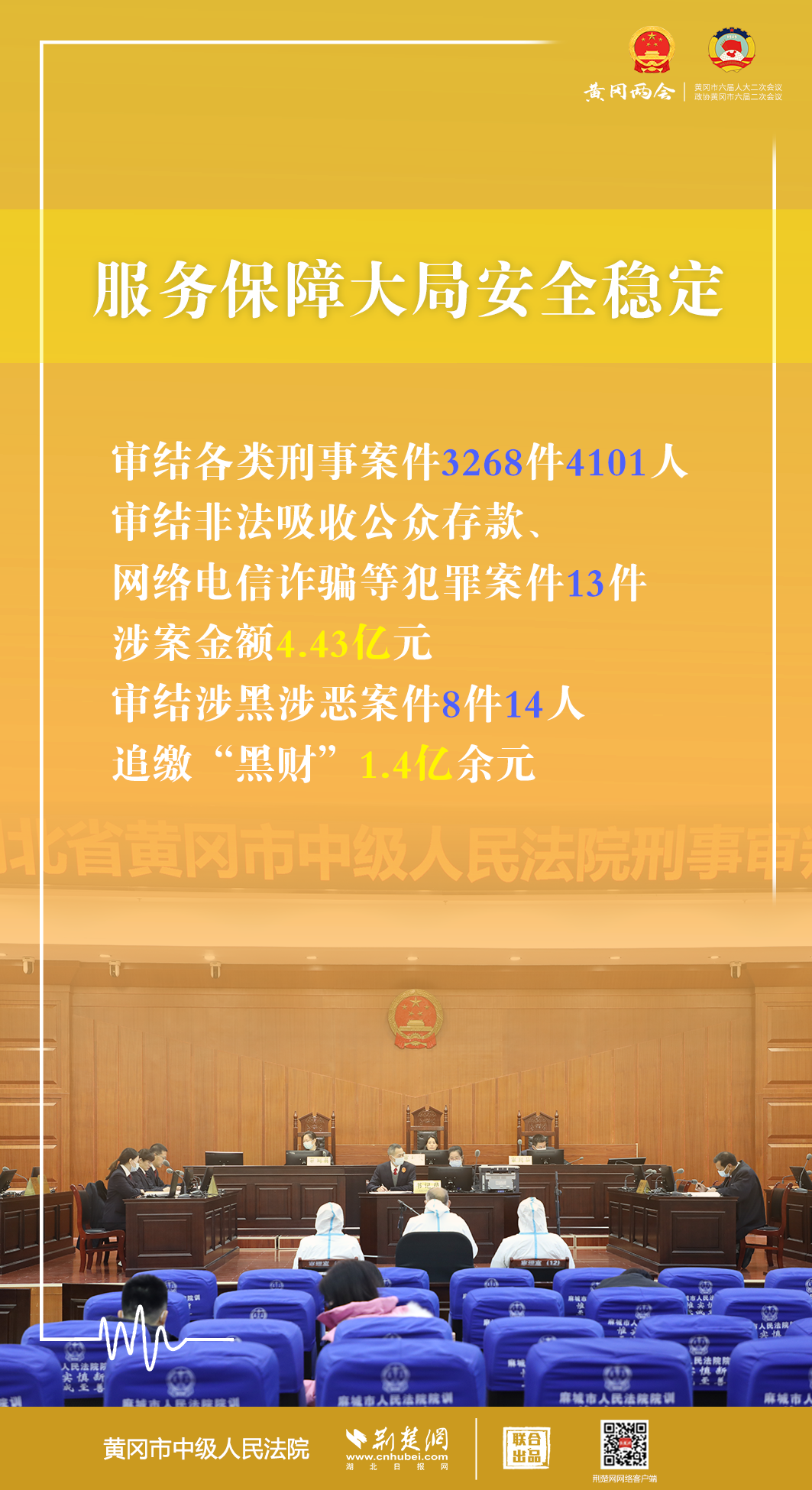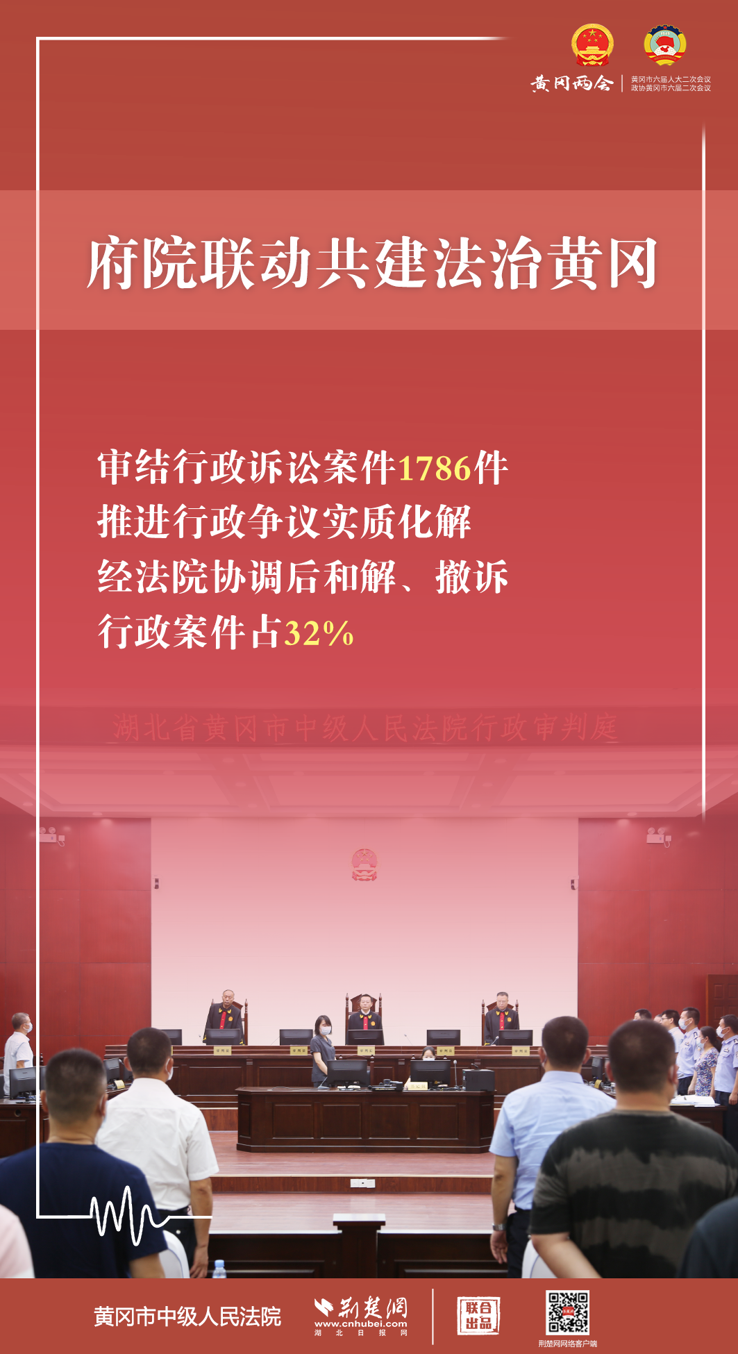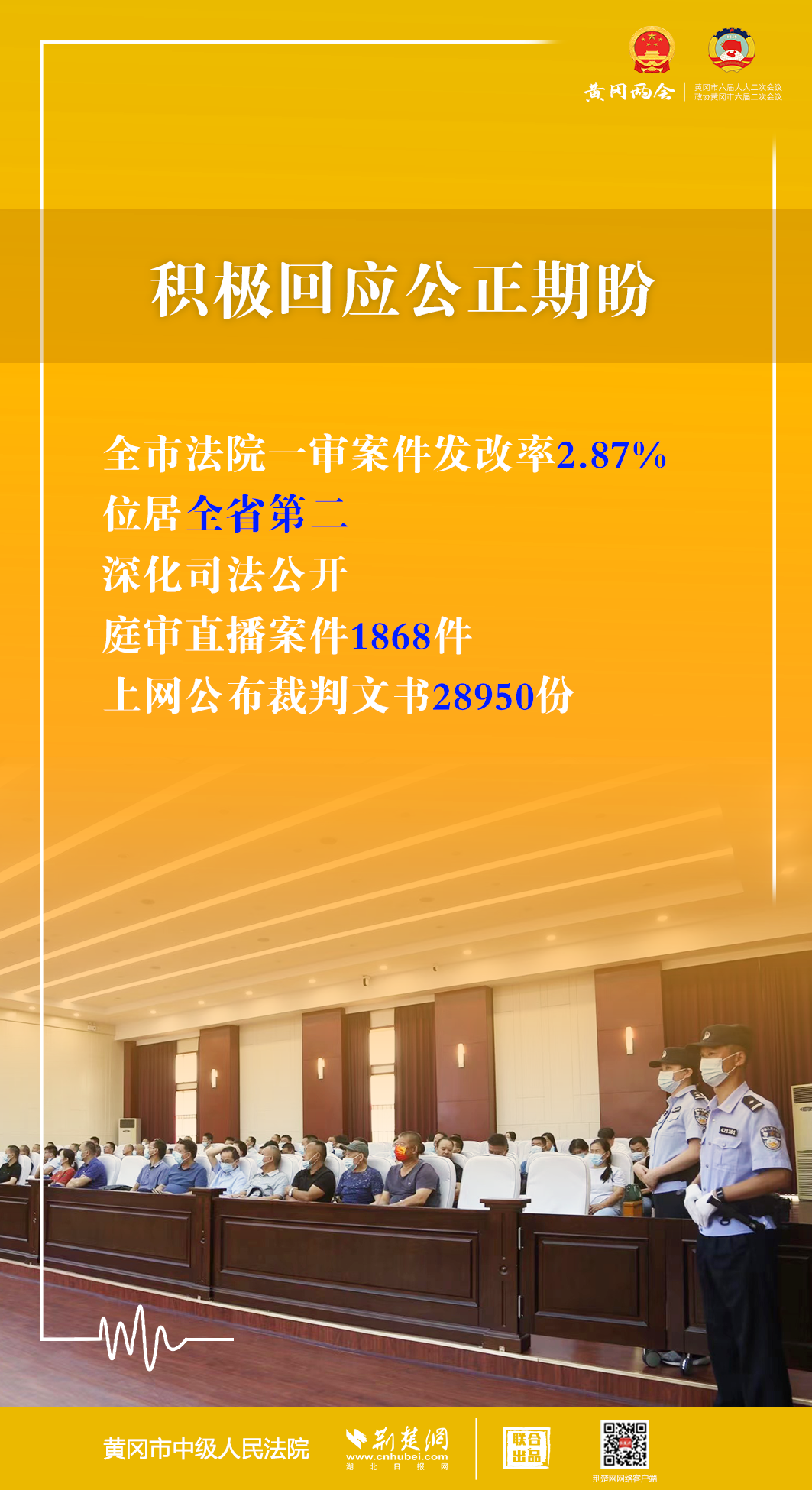 1月5日,黃岡市第六屆人民代表大會第二次會議開幕,黃岡市中級人民法院黨組書記、代院長文利紅向大會作報告。