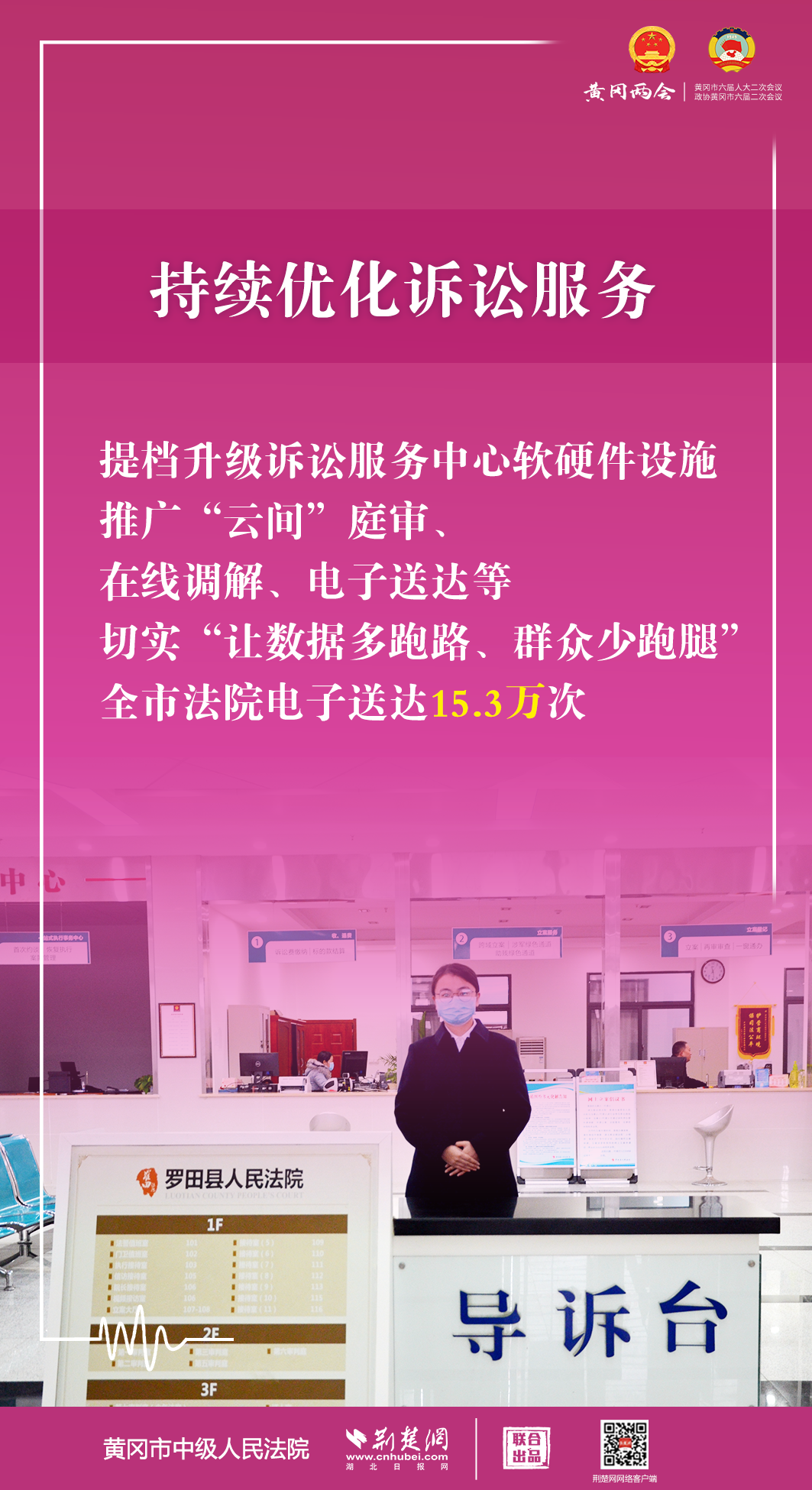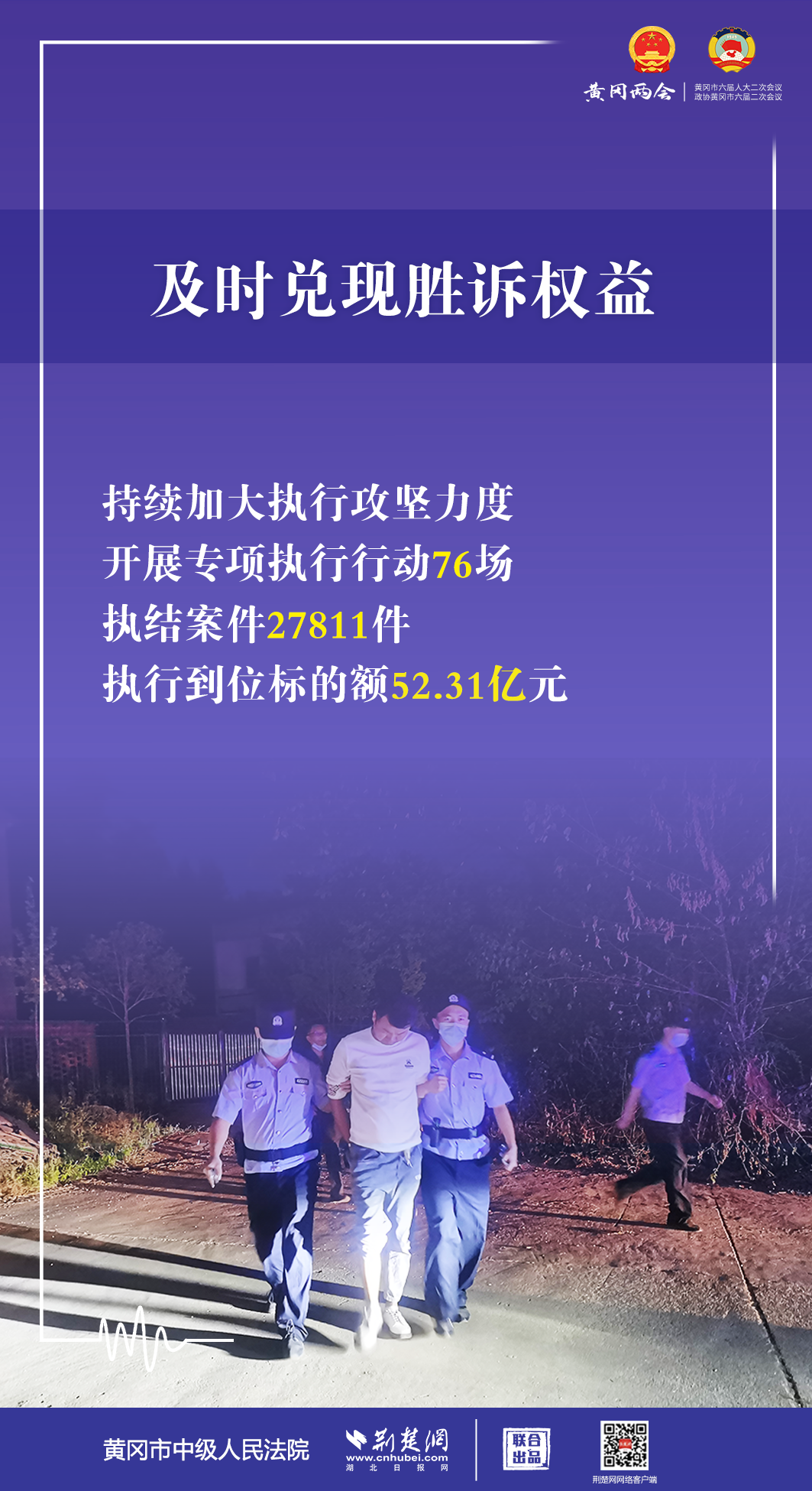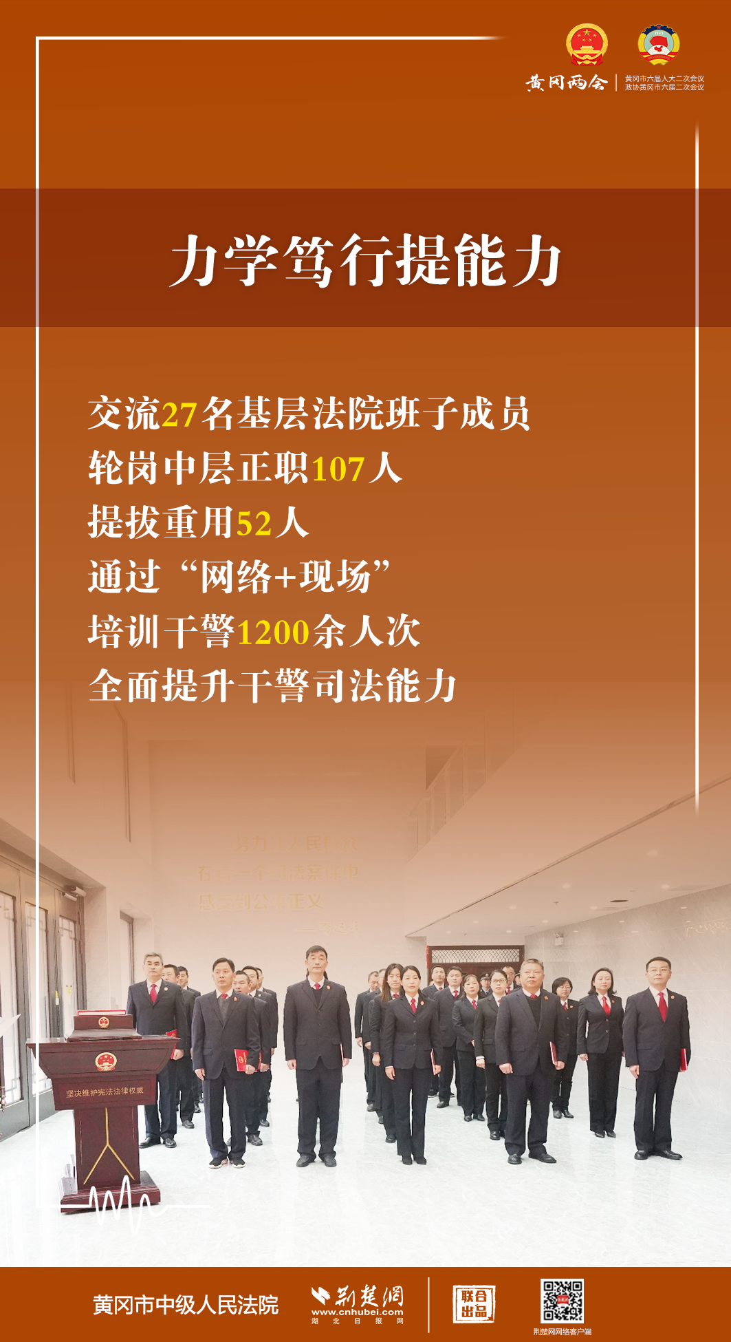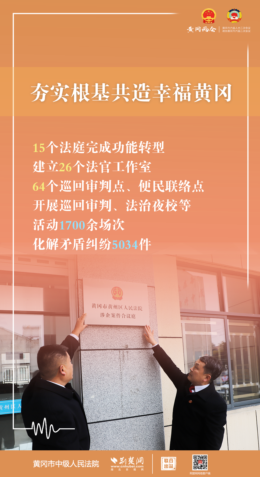 1月5日,黃岡市第六屆人民代表大會第二次會議開幕,黃岡市中級人民法院黨組書記、代院長文利紅向大會作報告。