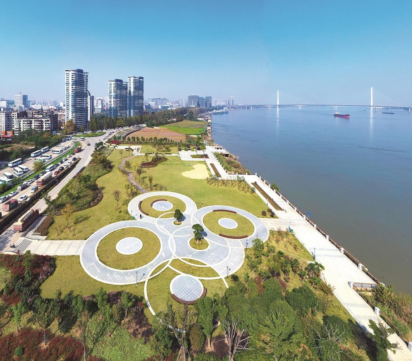 黃石港區(qū)沈家營長江岸線復(fù)綠后的美景。
