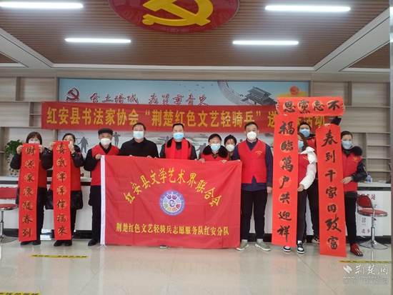 荊楚網(wǎng)(湖北日報(bào)網(wǎng))訊(通訊員毛紅平 李紫文)1月13日,紅安縣新時(shí)代文明實(shí)踐中心、紅安縣文聯(lián)組織縣書法家協(xié)會“荊楚紅色文藝輕騎兵”開展一年一度的送春聯(lián)、送祝?;顒?,到杏花鄉(xiāng)培城社區(qū)為居民群眾免費(fèi)書寫春聯(lián)200余副,福字80余張,傳遞黨和政府的關(guān)懷與溫暖。