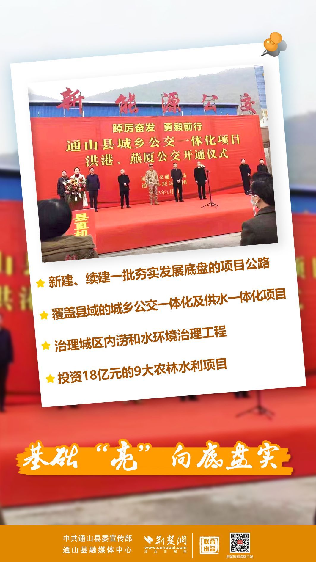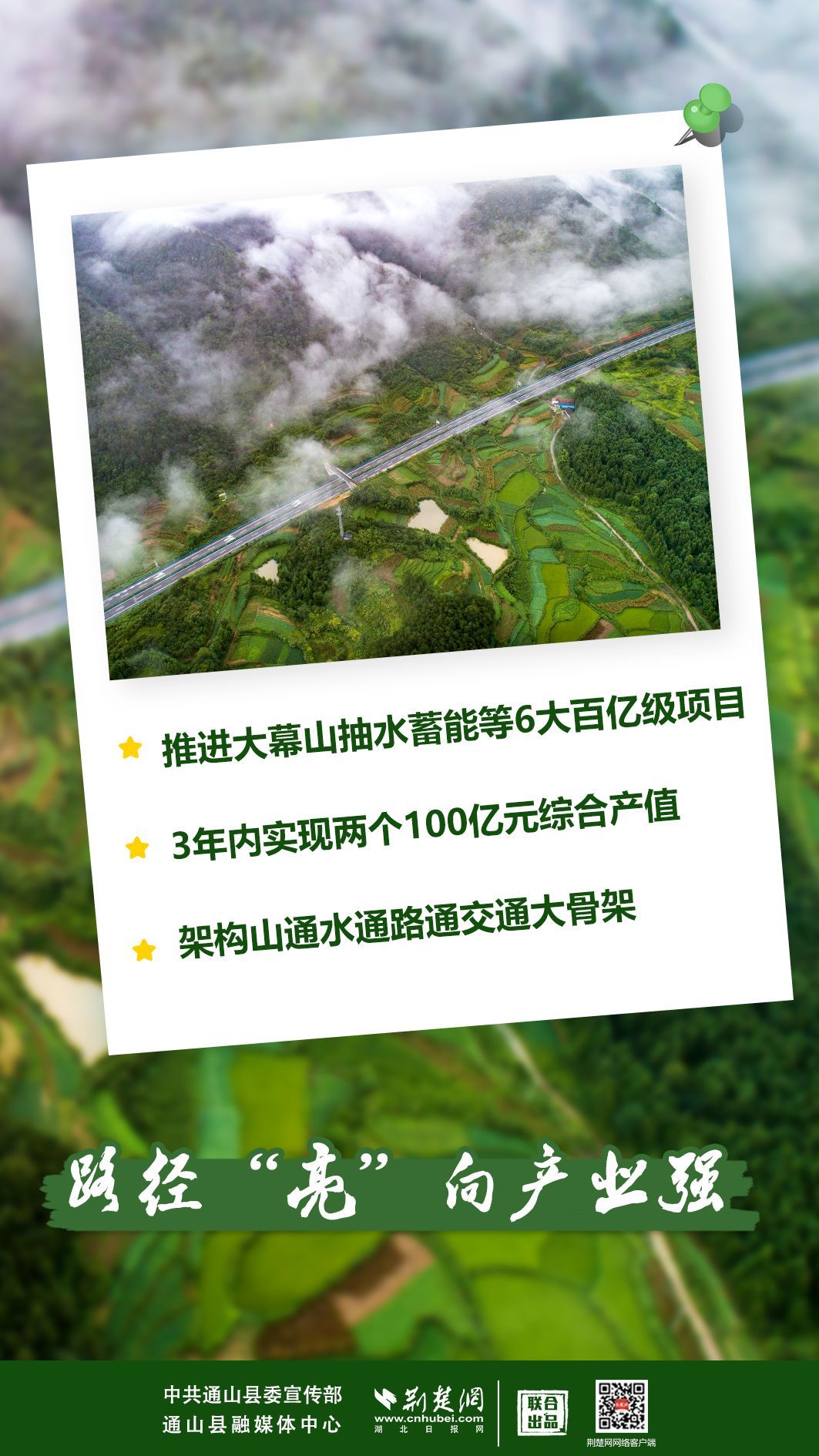 1月30日,通山縣項(xiàng)目建設(shè)比拼年、環(huán)境作風(fēng)優(yōu)化年、流域治理促進(jìn)年動(dòng)員大會(huì)透露,該縣找準(zhǔn)通山在咸寧打造武漢都市圈自然生態(tài)公園城市中的發(fā)展定位和個(gè)性化功能,推動(dòng)經(jīng)濟(jì)社會(huì)綠色低碳發(fā)展,建設(shè)現(xiàn)代化秀美新通山,確定在縣域2680平方公里全域?qū)嵤凹涌齑蛟靽?guó)家新型能源之都、國(guó)家全域旅游強(qiáng)縣”發(fā)展方略。