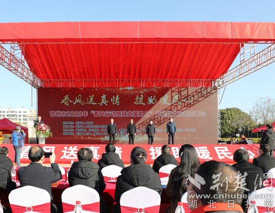 荊楚網(wǎng)(湖北日?qǐng)?bào)網(wǎng))訊(記者 金康、姜夢(mèng)瑤 通訊員 熊無(wú)雙)春風(fēng)送崗暖人心,供需對(duì)接惠民生。1月31日,鄂州市舉辦2023年“春風(fēng)行動(dòng)暨就業(yè)援助月”啟動(dòng)儀式,正式拉開以“春風(fēng)送真情,援助暖民心”為主題的專項(xiàng)就業(yè)服務(wù)活動(dòng)序幕。省人社廳黨組成員、副廳長(zhǎng)張國(guó)慶,省勞動(dòng)就業(yè)服務(wù)中心黨委委員、副主任章清華,廳就業(yè)促進(jìn)和失業(yè)保險(xiǎn)處副處長(zhǎng)易文等一行人參與此次活動(dòng)。