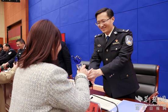 為獲獎(jiǎng)民警頒獎(jiǎng)。秦浩 攝