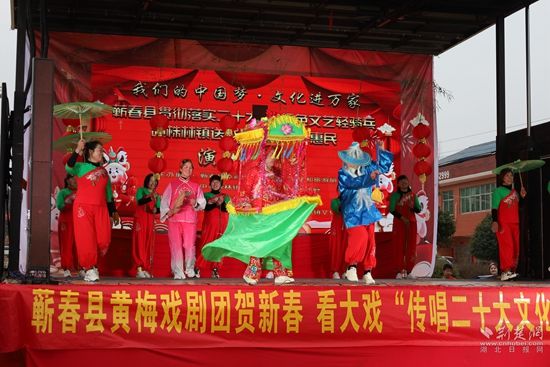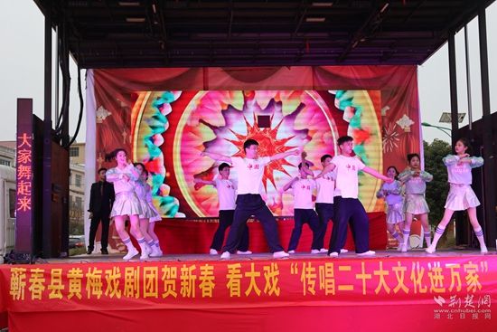 荊楚網(湖北日報網)訊(通訊員凌敏、程楚輝)2月2日,由蘄春縣委宣傳部、縣文化和旅游局、株林鎮(zhèn)人民政府聯(lián)合主辦的“我們的中國夢文化進萬家暨蘄春縣貫徹落實二十大精神+送戲下鄉(xiāng)”惠民文化演出走進當?shù)劓?zhèn)村一線,用黃梅戲表演唱等形式,把黨的二十大精神送到老百姓家門口,贏得群眾一片叫好聲。